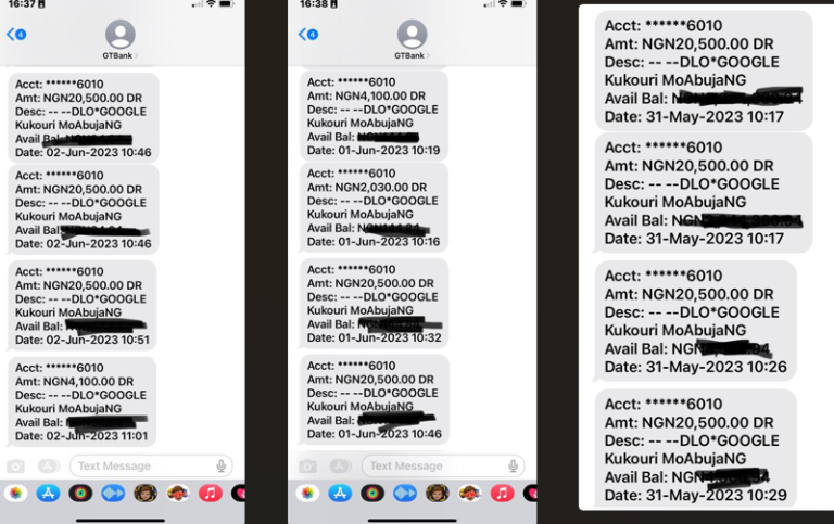 The customer stated, “The first debit was for N20,500 on that evening, and I couldn’t immediately identify the transaction. The description on the alert displayed ‘DLO*GOOGLE Kukouri MoAbujaNG.'”