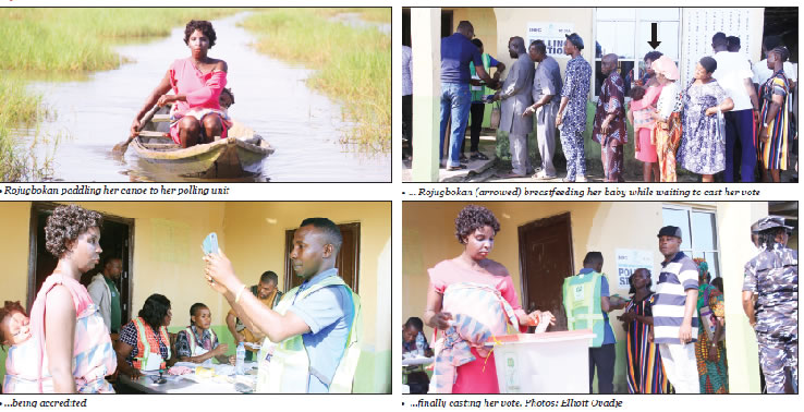 With practised arms, she grips her paddle and begins the journey to Obenla, the place she plans to solid her vote at Ward 4, Unit 006 of the governorship election.