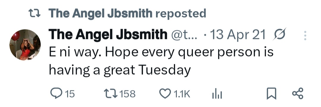 She wrote: “I love Nigerian men because you guys are homophobic until its time to ask your girlfriends for thresomes. you guys are not real.”Angel went on to share tweets she made back in 2021 in which she identified as queer. See below.