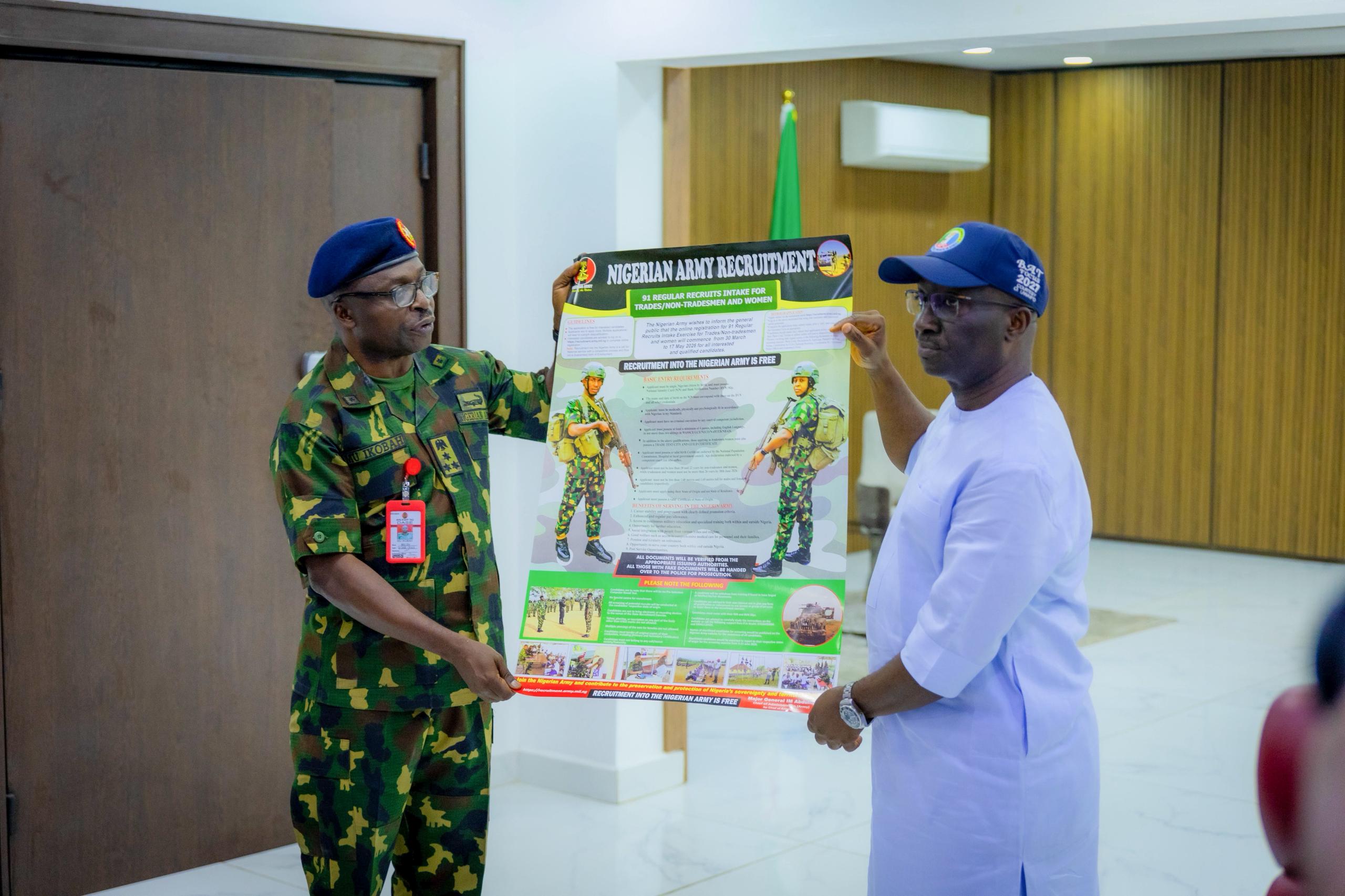Governor Okpebholo also appealed to the Nigerian Army to consider extending the application deadline to allow more eligible youths, especially those in rural communities, to participate.
