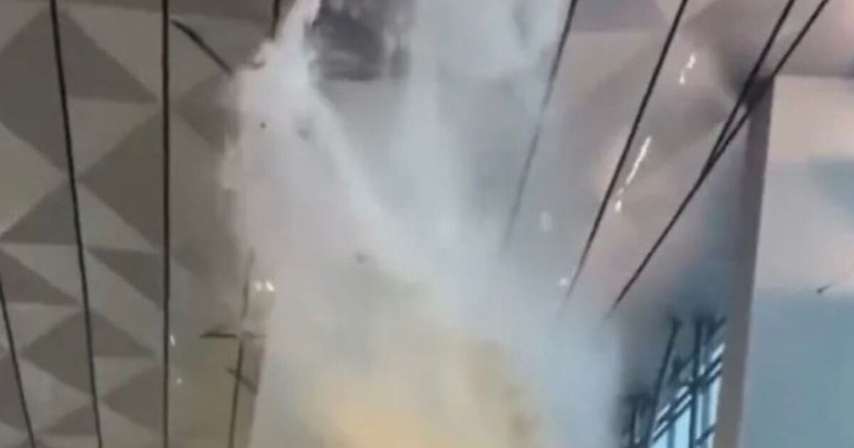 Chaotic moment roof at Jakarta Airport rips open and water gushes in