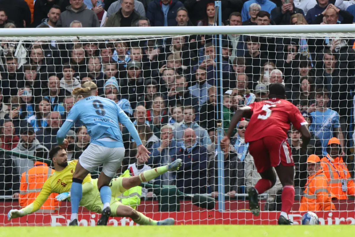 Rayan Cherki found Semenyo’s run and he lofted a pin-point cross towards Haaland, who made a perfectly-timed run in front of Ibrahima Konate to glance a superb header past Giorgi Mamardashvili.