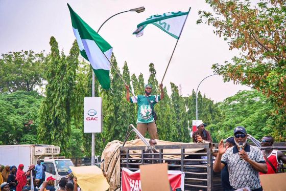 In a symbolic act of defiance, the party opened the protest by singing Nigeria’s old National Anthem: “Arise, O Compatriots.”