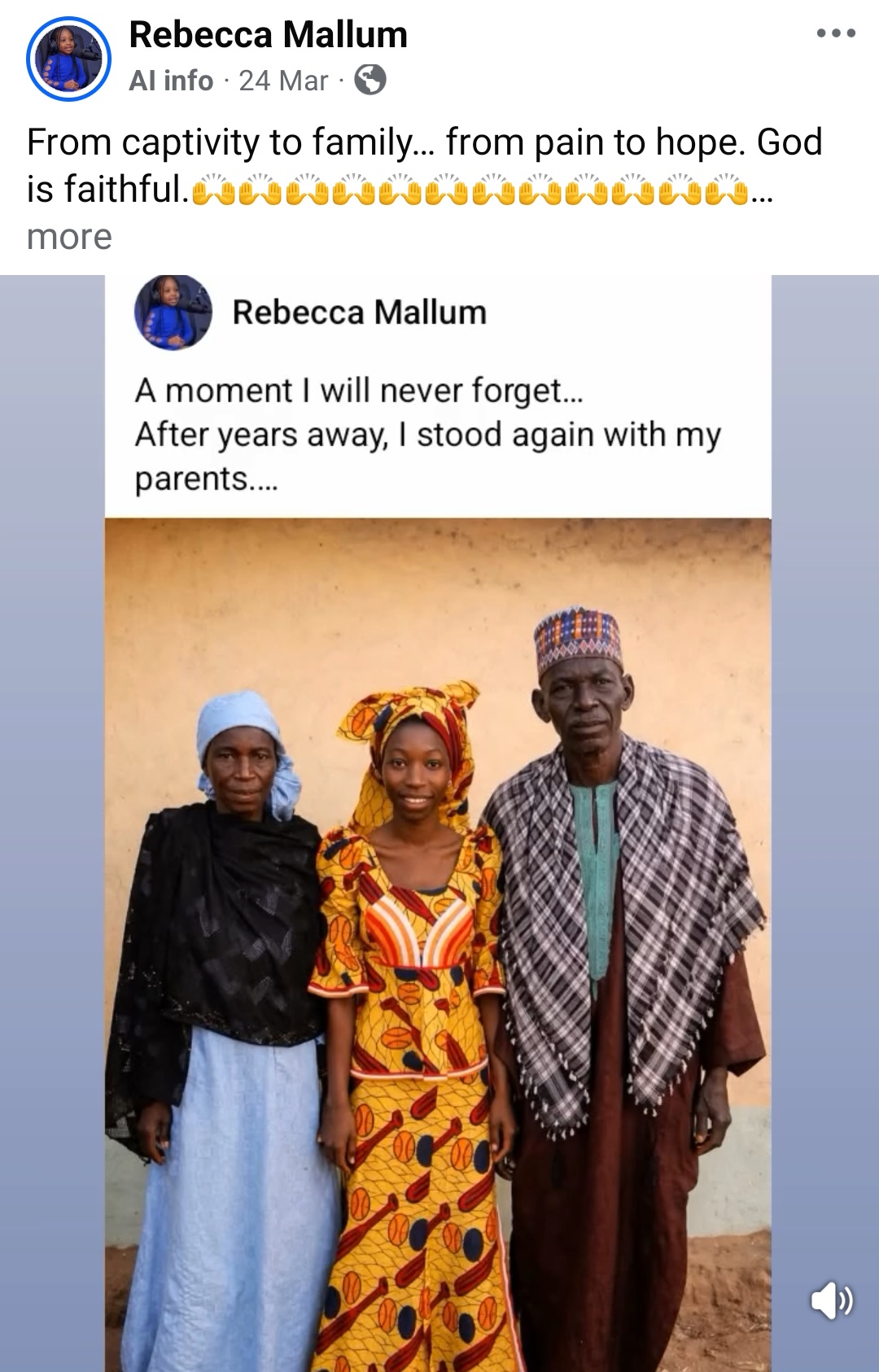 “And to the world, I say this with all the strength in me: Our story is real. Our pain is real. Our kidnapping was not fake. We lived it. We felt it. We are still healing from it.