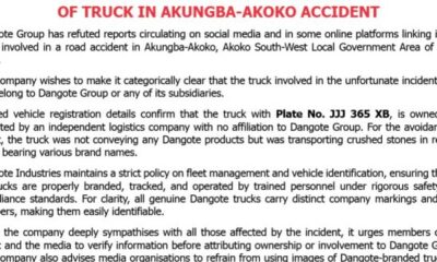 Dangote Group has refuted stories circulating on social media and in some on-line platforms linking it to a truck concerned in a...