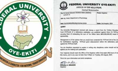 Kamal A. Odunjo-Saka, a lecturer at Federal College Oye-Ekiti, (FUOYE) in Ekiti State has accused the varsity administration of suspending him after exposing three Tertiary Schooling...