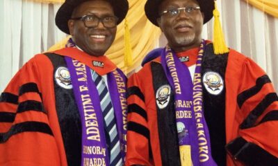 L-R: Government Chairman, Lagos State Inner Income Service, LIRS, Mr. Ayodele Subair conferred with a doctorate diploma in Enterprise Administration (honoris causa) and...