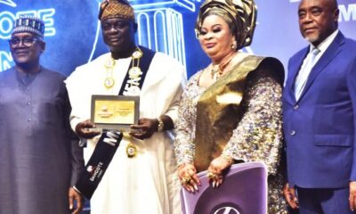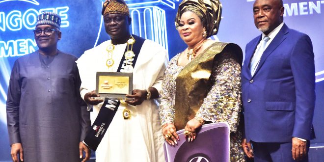 L-R: President/CE, Dangote Industries Restricted, Aliko Dangote; General Winner, Otunba Kazeem Olayemi Odeyeyiwa, MD/CEO Kazab Heritage Restricted and his spouse, Chief Mrs Adesola Odeyeyiwa; Chairman, Dangote...