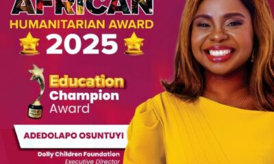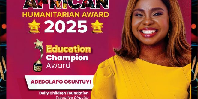 Adedolapo Osuntuyi, Govt Director of the Dolly Kids Foundation, earned the African Humanitarian Award within the “Schooling Champion” class on January 26, 2025,...